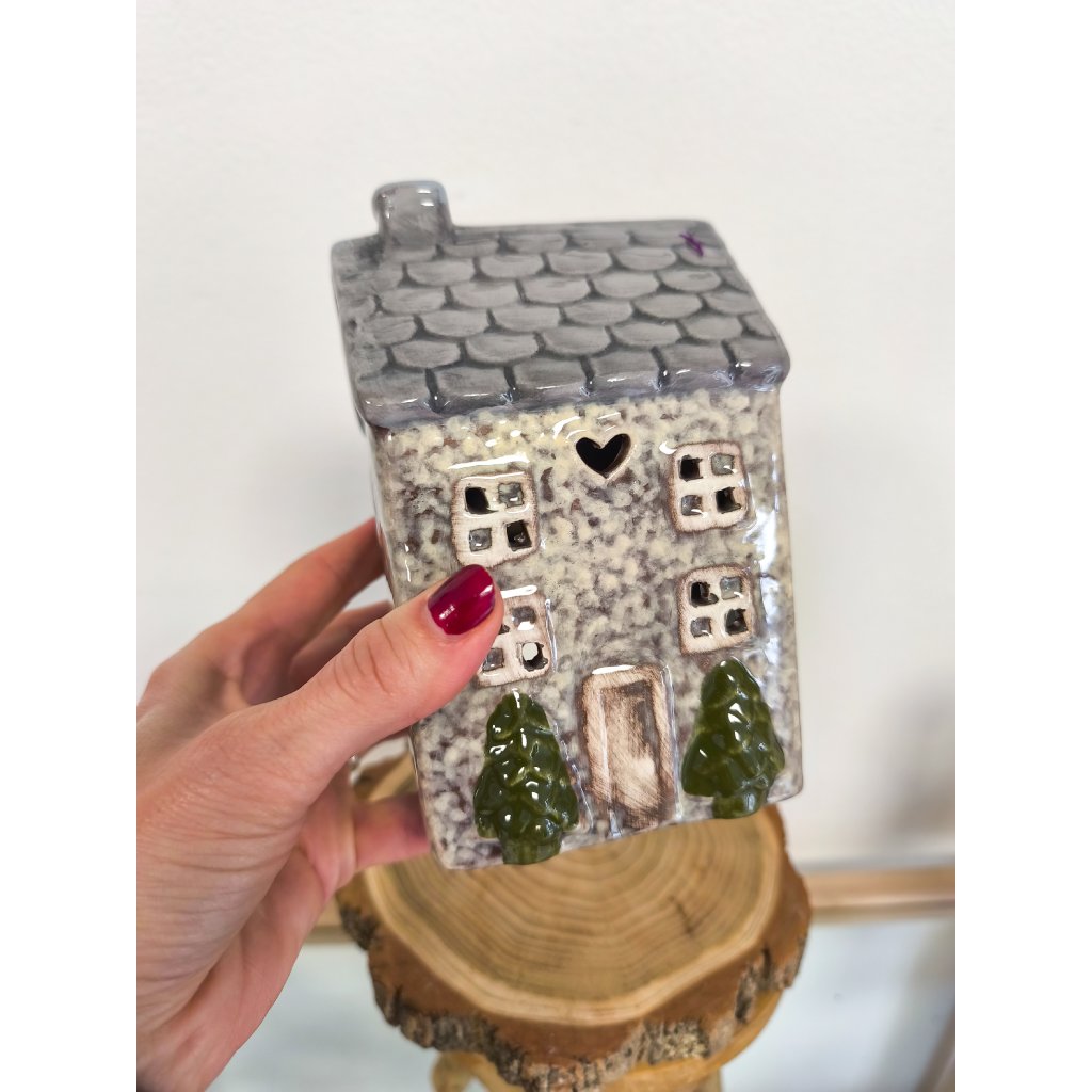 Keramický domeček, vhodný jako dekorace a lze do něj umístit čajovou svíčku.