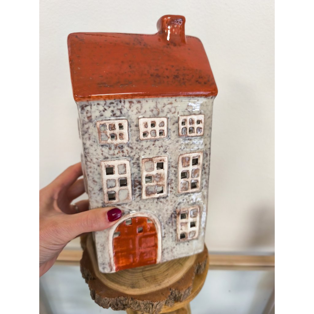 Keramický domeček, vhodný jako dekorace a lze do něj umístit čajovou svíčku.