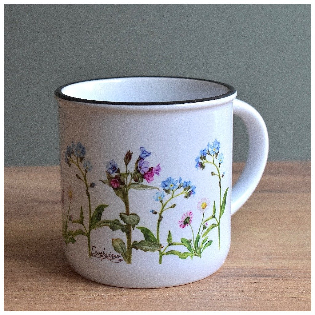 Minimalistický design se krásně doplňuje s motivy přírody a pokud milujete plecháčky, ale pijete raději z keramiky, je pro vás hrneček ten pravý.