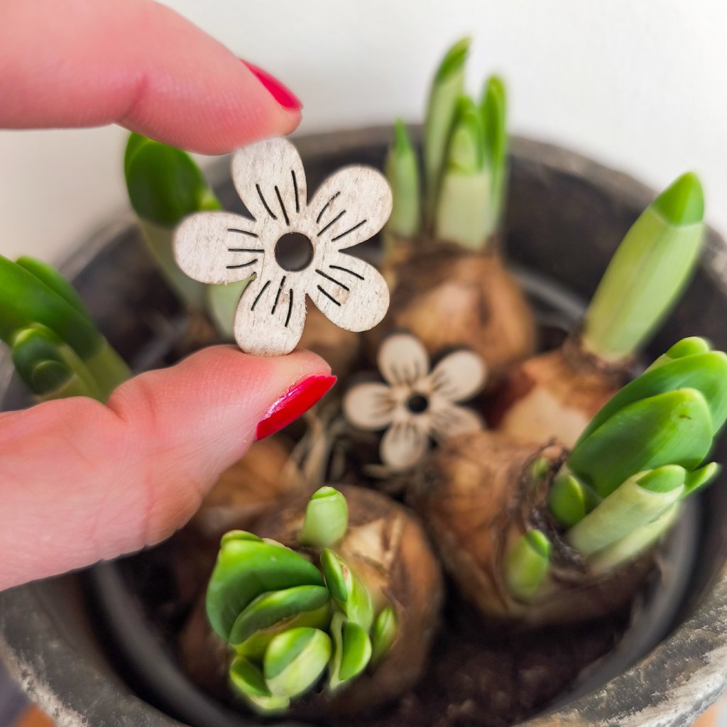 mini kytička ze dřeva - rozměr cca 2,5 cm, tloušťka 0,5 cm
