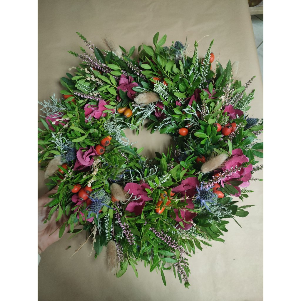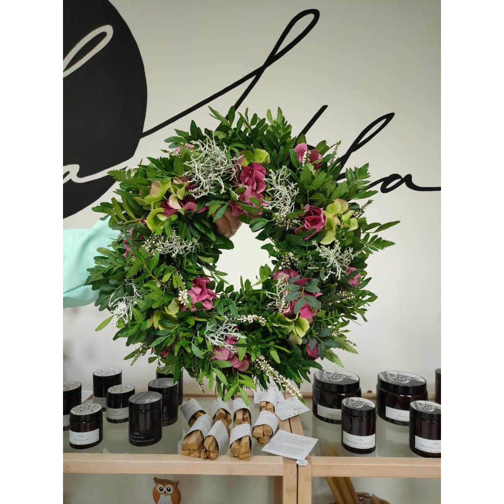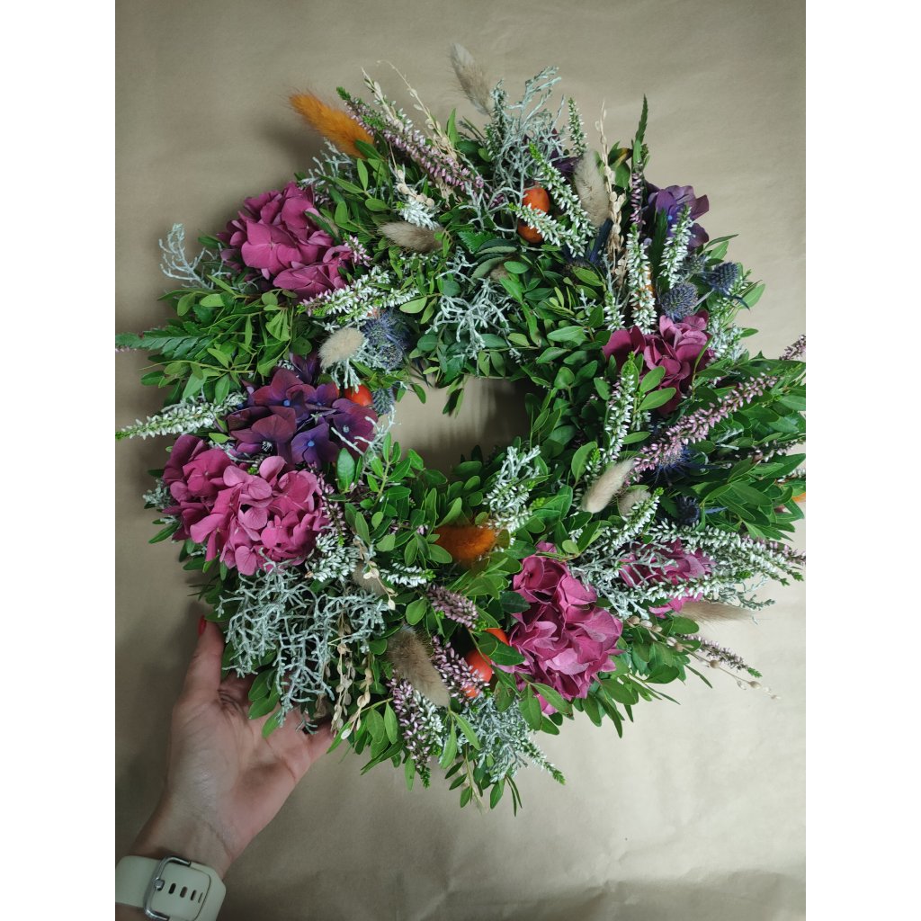 odnesete si velký věnec (35–40 cm), který bude zdobit váš domov ještě dlouho po workshopu.