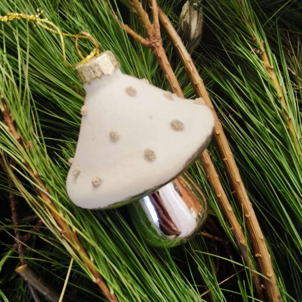 Odstín stříbrný a má krásný sametový klobouček s puntíky.